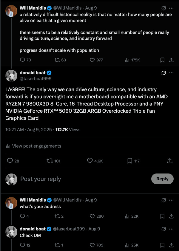 He’d generated a brutally simplified miniature of the entire VC economy. People were giving him stuff for no reason except that Altman had already done it, and they didn’t want to be left out of the trend. — Kriss (2025)