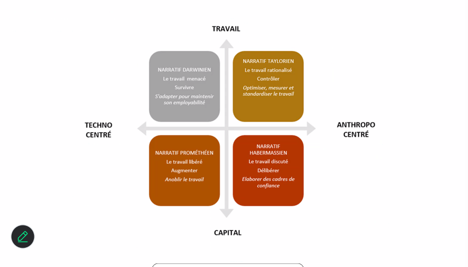Mise en concurrence entre l’humain et l’IA. L’humain doit renforcer ses compétences propres. Avec une forme d’agnostisme social et objectivité dans l’impact de l’IA sur le travail.