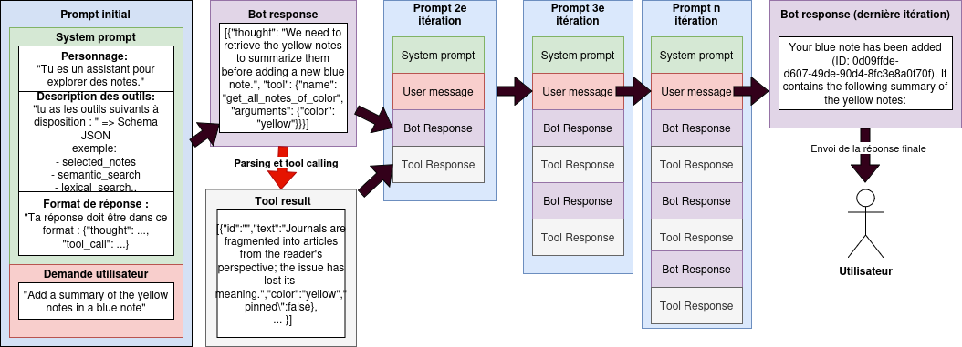 Depuis GPT-3.5 et sa sortie publique en décembre 2022, l’application ChatGPT ne se contente pas d’envoyer seul le prompt de l’utilisateur pour interroger le LLM: dans le prompt global, on trouve un ensemble d’instructions préliminaires (le system prompt) et d’informations complémentaires comme l’historique des échanges (chat history).