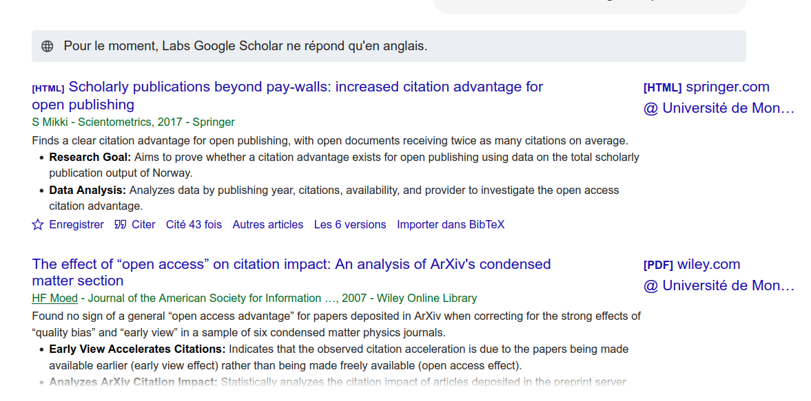 Google Scholar Labs donne une explication de la présence de l’article dans la liste de résultat